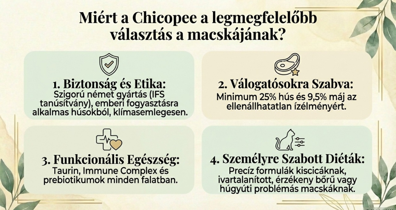 A gondosan válogatott összetevők és a kíméletes gyártási folyamat révén a Chicopee eledelek emészthetősége meghaladja a 90%-ot. Receptjeinkben könnyen emészthető szénhidrátforrásokat kombinálunk.