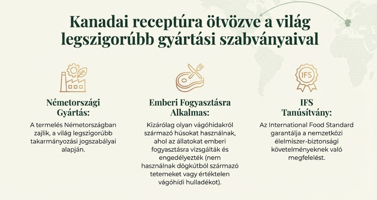 A magas olaj- és zsírtartalom (köztük 1,5% lazacolaj) biztosítja a fényes, rugalmas szőrzetet.